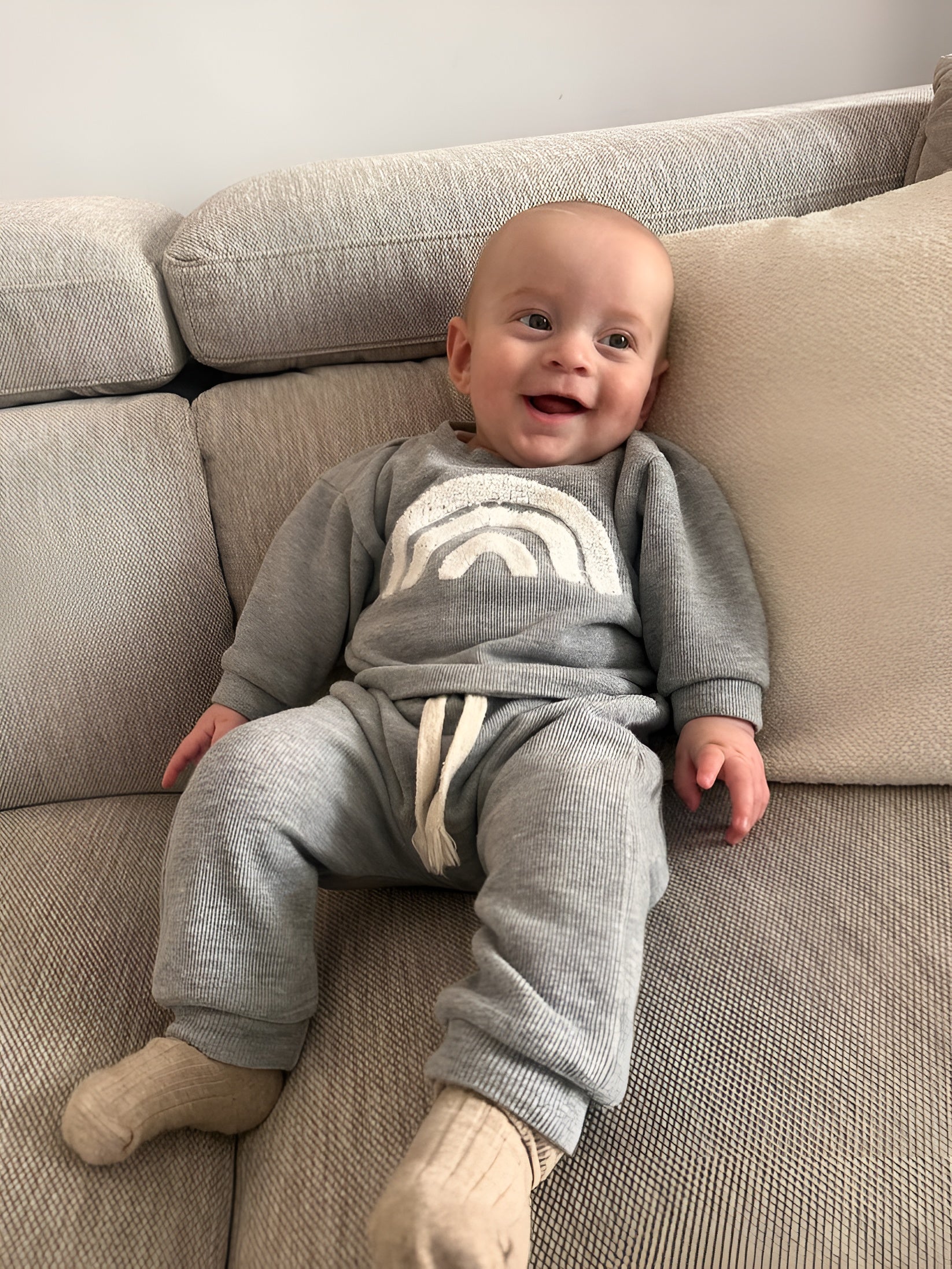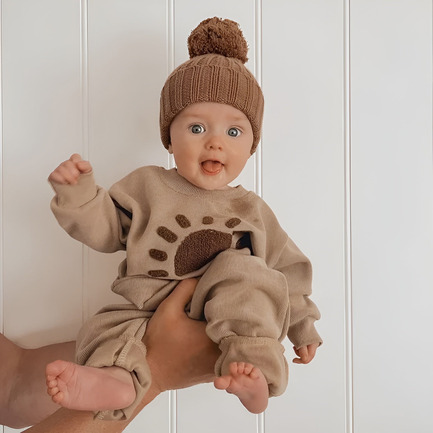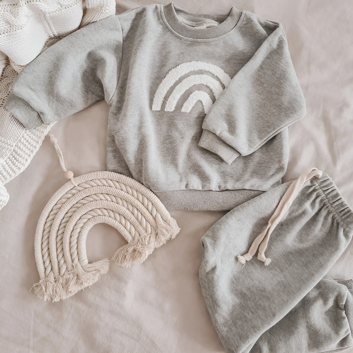 Ge varje kylig dag en solstråle med Nya Sunshine™ Set. Denna söta uppsättning med mjuk tröja och byxor är perfekt för de kallare månaderna. Med ett gulligt solmotiv och mjuka, neutrala färger är den idealisk för alla tillfällen och håller din bebis varm och bekväm.