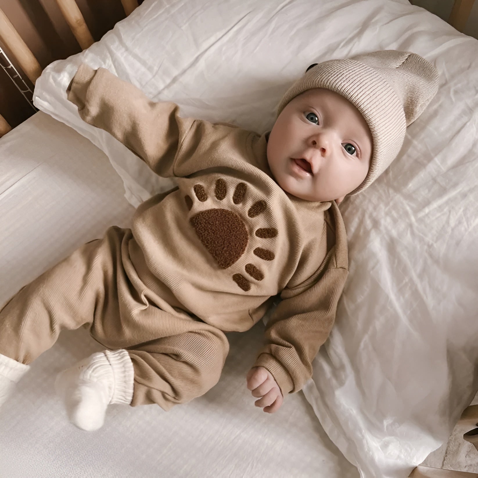 ✔️ Mjuk och Andningsbar: Tillverkad av hudvänliga, andningsbara material som håller din bebis bekväm oavsett om den leker, sover eller kryper.